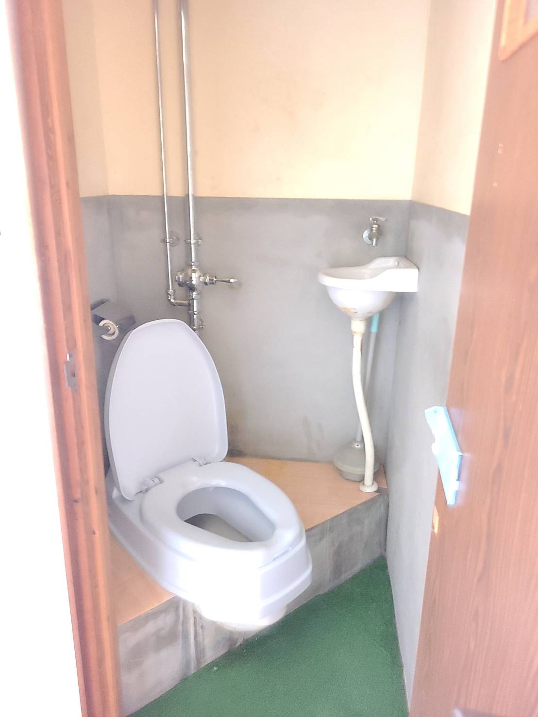 トイレは和式に新品の洋式据置タイプを設置した水洗です。