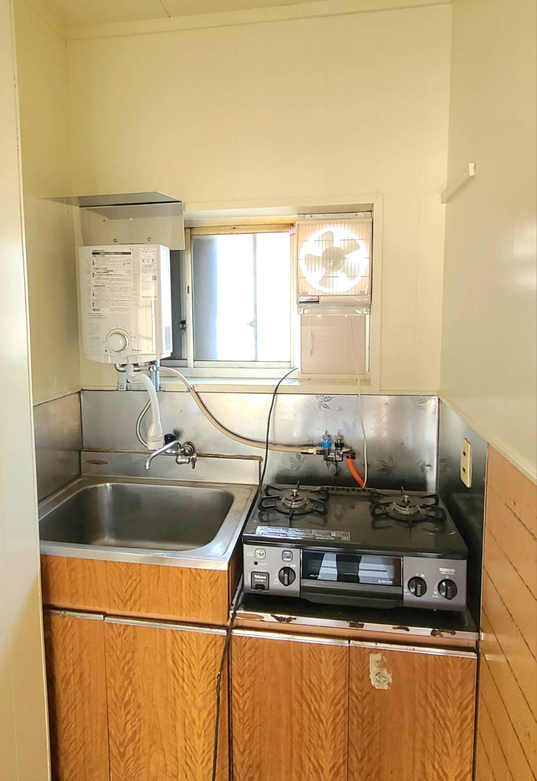 換気扇・給湯器・ガスコンロ新品で壁の塗り替え、襖張り替え済みです。